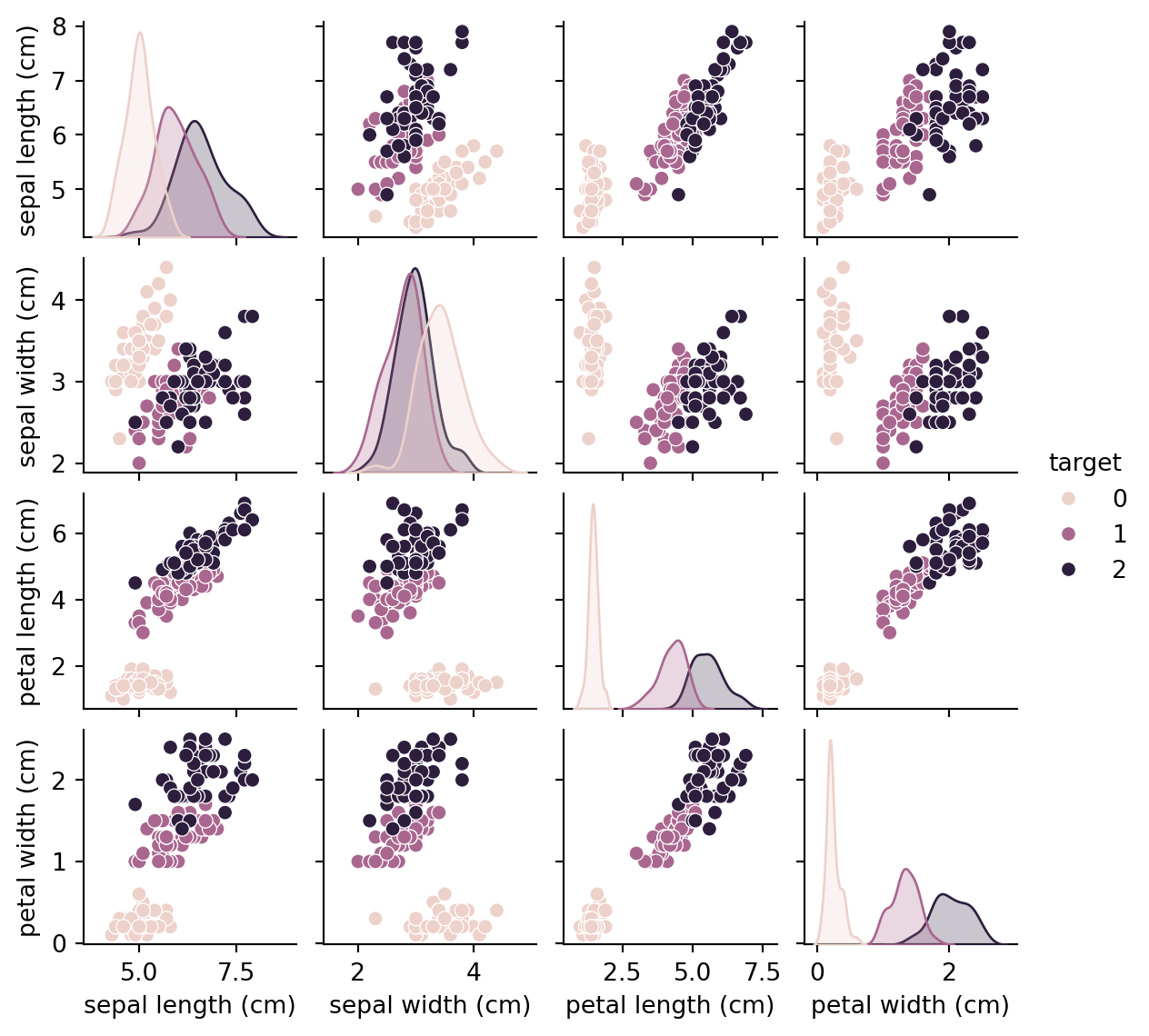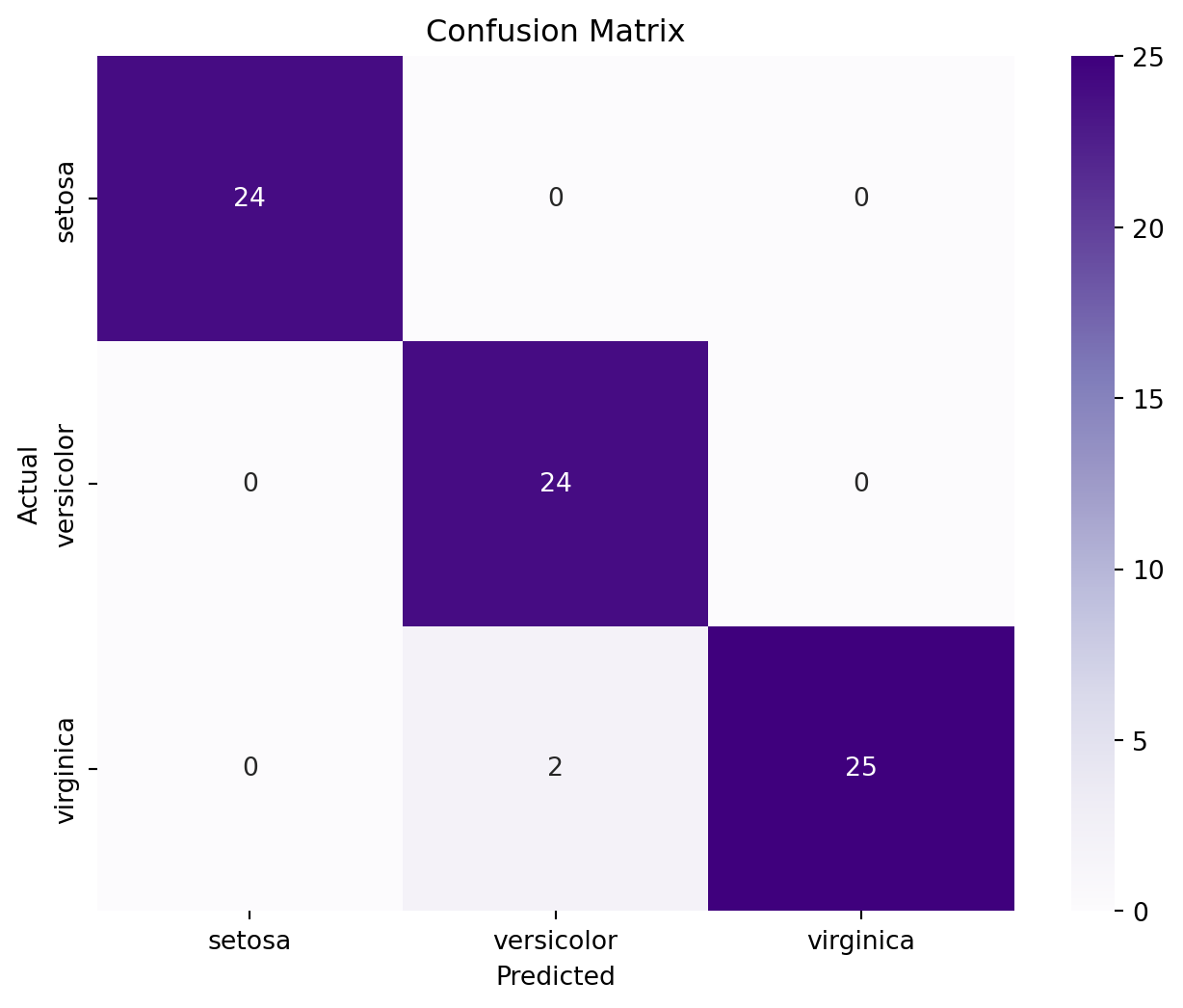 import pandas as pdfrom sklearn import datasetsfrom sklearn.linear_model import LogisticRegressionfrom sklearn.model_selection import train_test_splitfrom sklearn.metrics import accuracy_score, confusion_matrix,classification_reportimport matplotlib.pyplot as pltimport seaborn as sns# Load the iris datasetiris = datasets.load_iris()X = iris.datay = iris.target iris_df = pd.DataFrame(iris.data,columns=iris.feature_names)iris_df['target']=iris.targetiris_df.head(5)